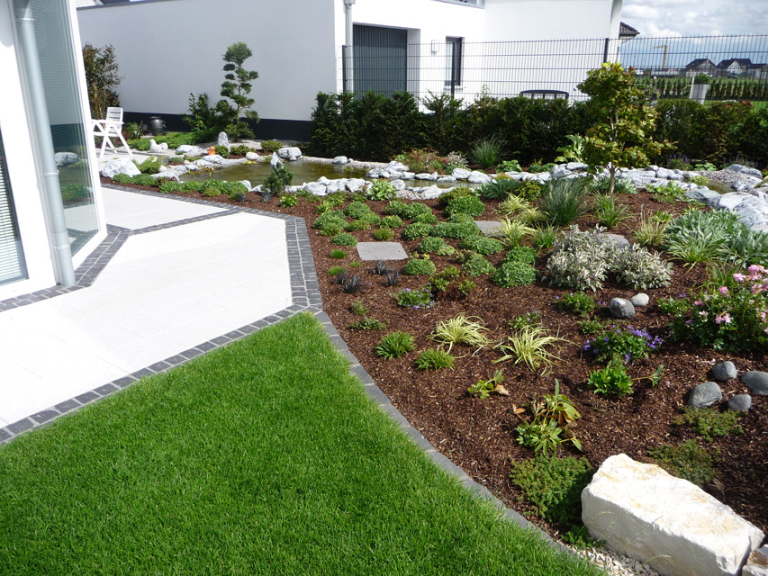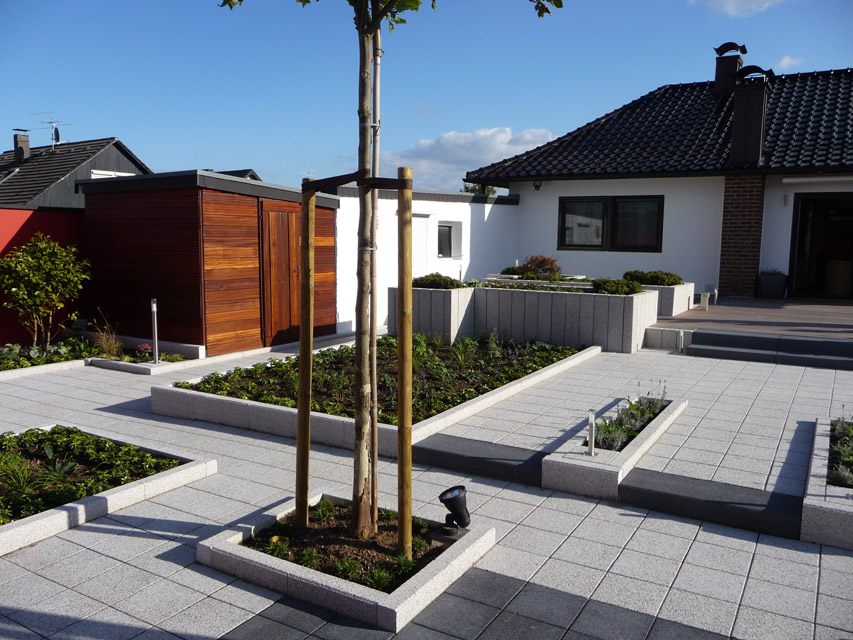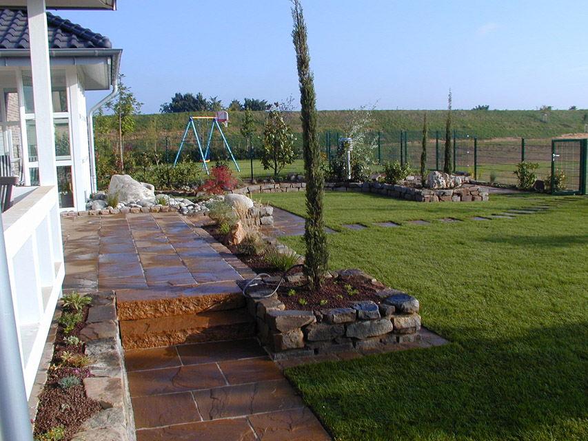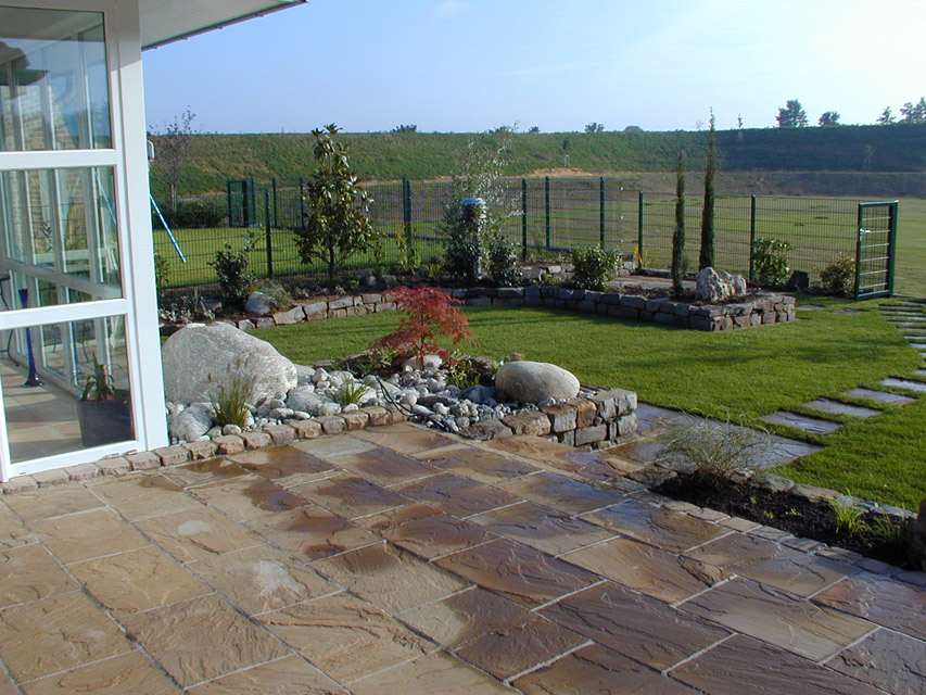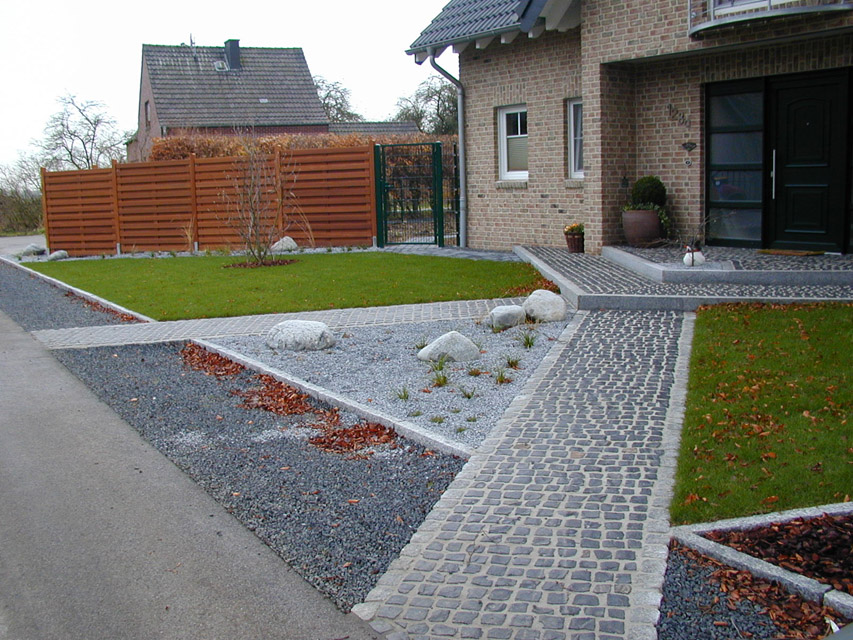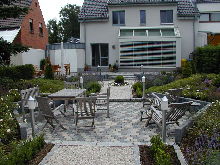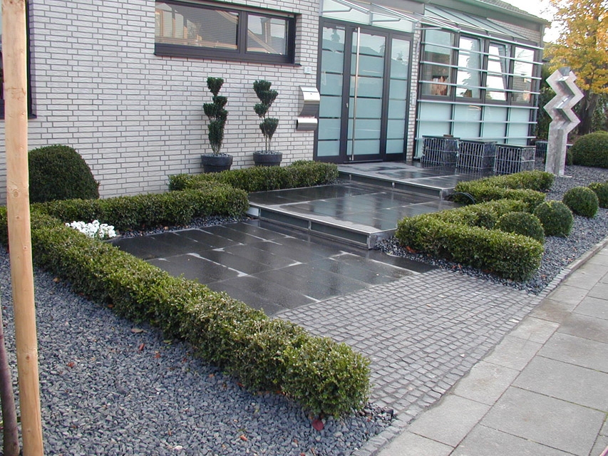 Während Sie diese Bilder betrachten werden Sie feststellen, dass "Pflasterarbeiten" hierfür ein unzureichender Begriff ist. Gerade in der letzten Zeit zeichnet sich ein neuer Trend hin zu einer alten Tradition ab. Der gute alte Plattenbelag zieht wieder in unsere Gärten ein. Doch bevor Sie falsche Schlüsse ziehen: er hat sich kräftig gewandelt.